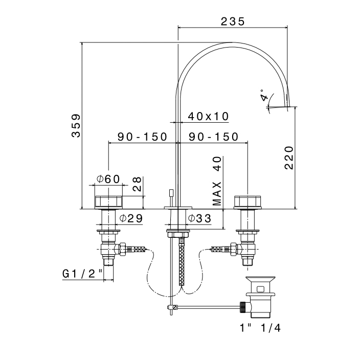 Смеситель для ванны Newform ParkLE 69700.05.093 Хром Newform ParkLE Смеситель для ванны на 3 отверстия (1/2” t piece) с высоким изливом и донным клапаном, цвет: хром + черный матовый