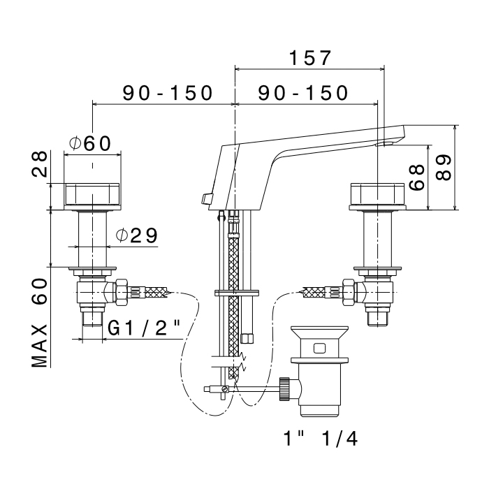 Смеситель для ванны Newform ParkLE 69706.05.093 Хром Newform ParkLE Смеситель для ванны на 3 отверстия (1/2” t piece) с коротким изливом и донным клапаном, цвет: хром + черный матовый