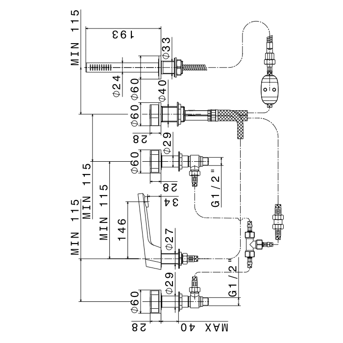 Смеситель для ванны Newform ParkLE 69782C.62.093 Золото Newform ParkLE Смеситель на борт ванны на 5 отверстий, с изливом, перекл. и ручным душем, цвет: PVD glossy gold + черный матовый