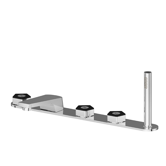 Смеситель для ванны Newform ParkLE 69789C.05.093 Хром Newform ParkLE Смеситель на борт ванны на 5 отверстий, с изливом, перекл. и ручным душем, цвет: хром + черный матовый
