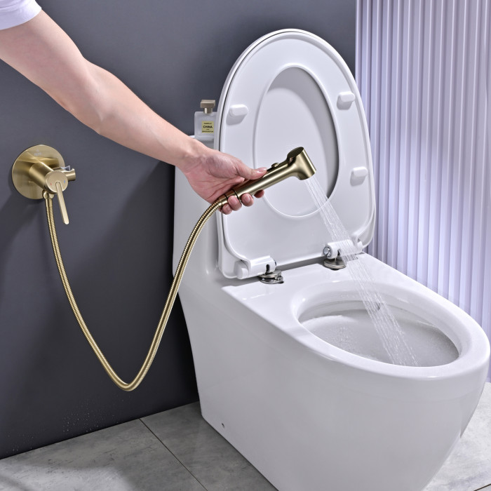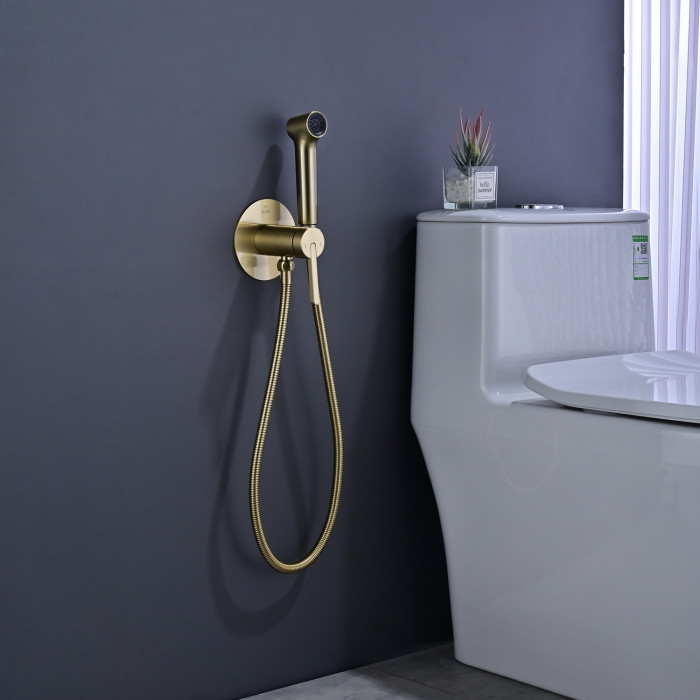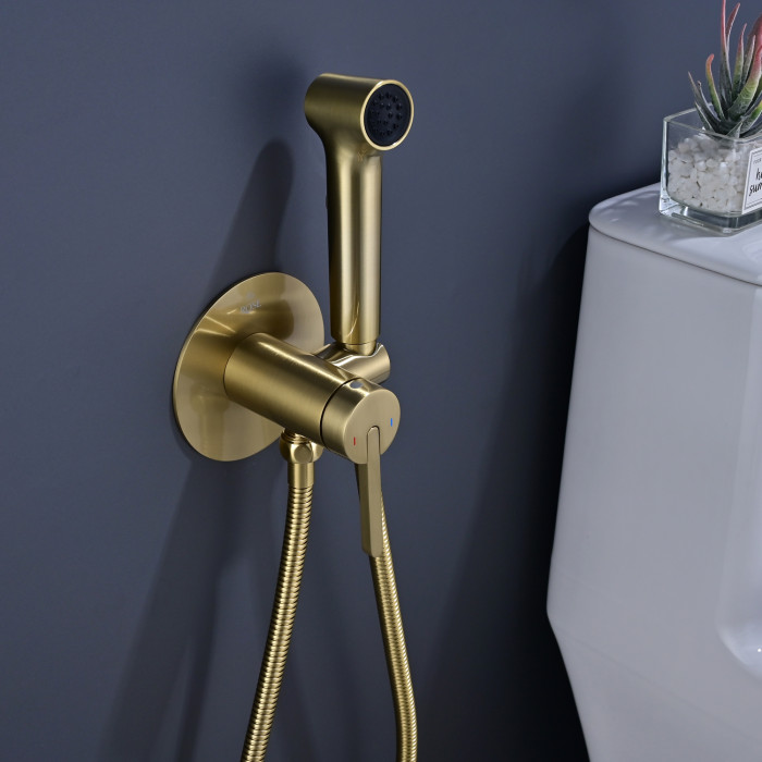Гигиенический душ со смесителем Rose R235G, золотой сатин