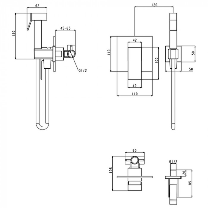 Гигиенический душ со смесителем встраиваемый Grocenberg GB1001CR, хром Смеситель встраиваемый с гигиеническим душем Grocenberg GB1001CR, хром.