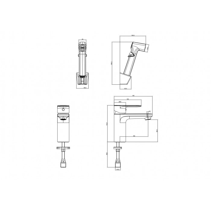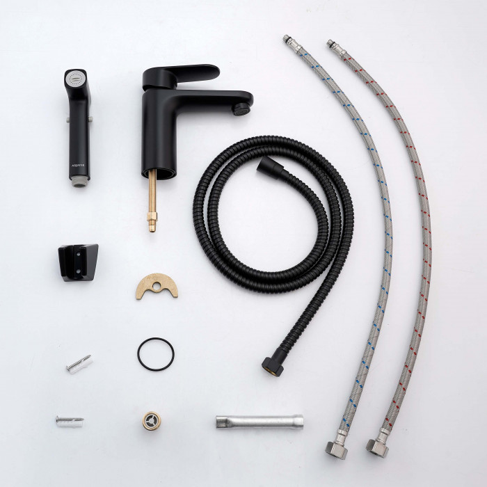 Смеситель для раковины Aquatek НИКА AQ1812MB черный матовый AQ1812MB НИКА смеситель для раковины 90 без донного клапана с гигиеническим ручным душем, матовый черный 40x9,5x34,5 1. Смеситель