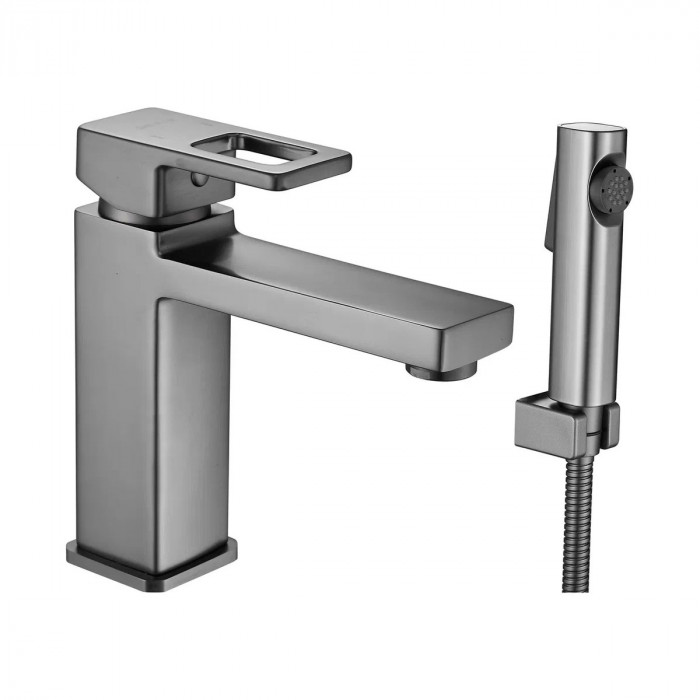 Смеситель для раковины с гигиеническим душем Shevanik S8271T, оружейная сталь