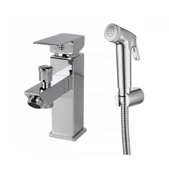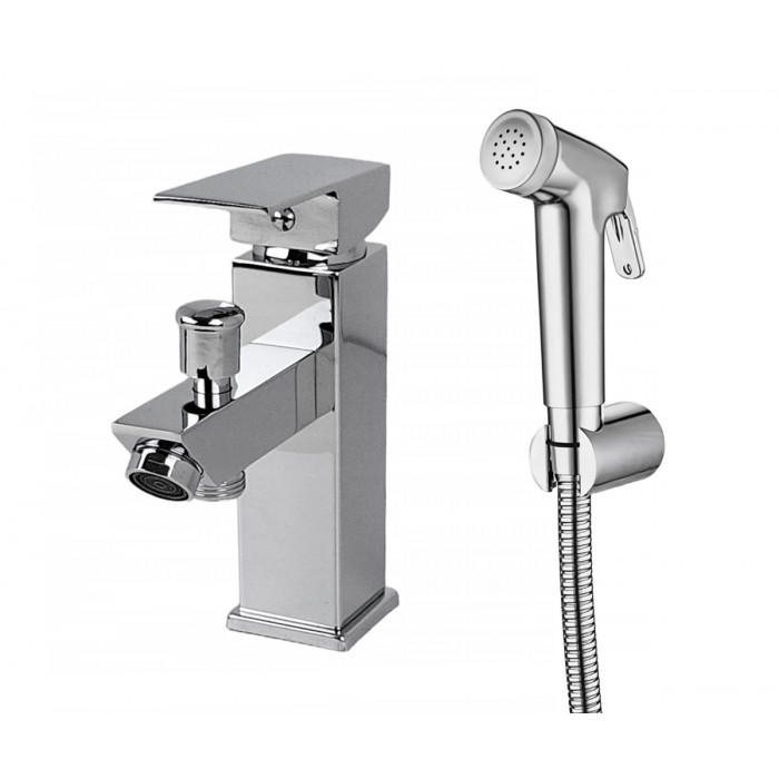 Смеситель для раковины с гигиеническим душем СИМПЛ BD980 хром Bronze de Luxe BD980 современный; лофт латунь хром глянцевая Смеситель, гигиенический душ, детали для монтажа, шланг 150см, излив ИТАЛИЯ