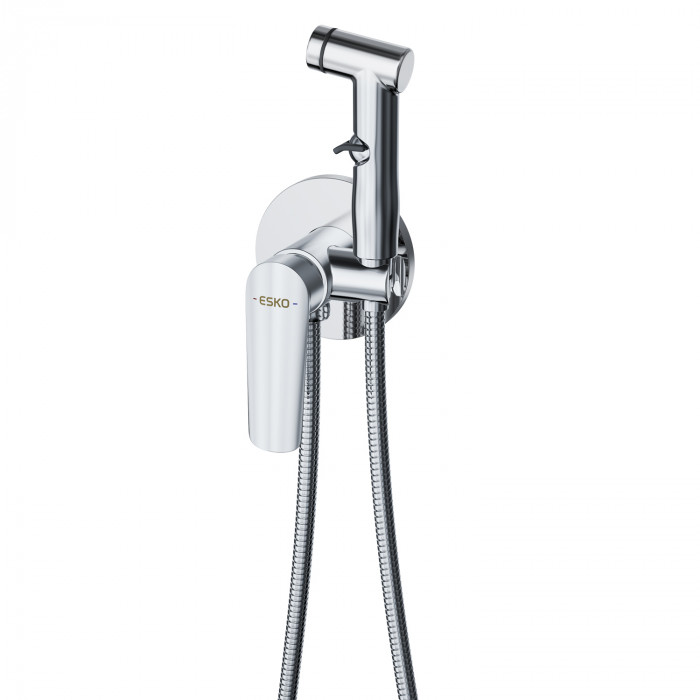Смеситель Lagos скрытого монтажа с гигиеническим душем SMHLG ESKO Россия Латунь Картридж 12 л/мин скрытый монтаж Смеситель с гигиеническим душем скрытого монтажа. Корпус: латунь. Картридж: 25мм. В комплекте: шланг 1,2метра, декоративная накладка, монтажный комплект. Цвет: хром. Цвет: хром