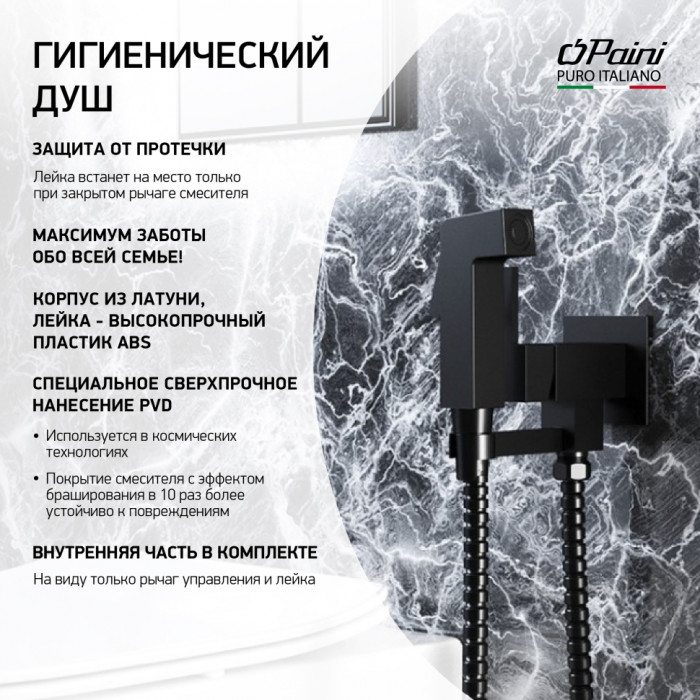 Смеситель с гигиеническим душем PAINI Bella встраиваемый, лейка ABS, черный брашированный PVD (PZ) BLPZ442
