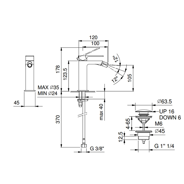 Смеситель для биде Fantini Mint 34 93 F008F Нержавейка FANTINI MINT Смеситель для биде на 1 отверстие, однорычажный, с донным клапаном, цвет матовая натуральная сталь