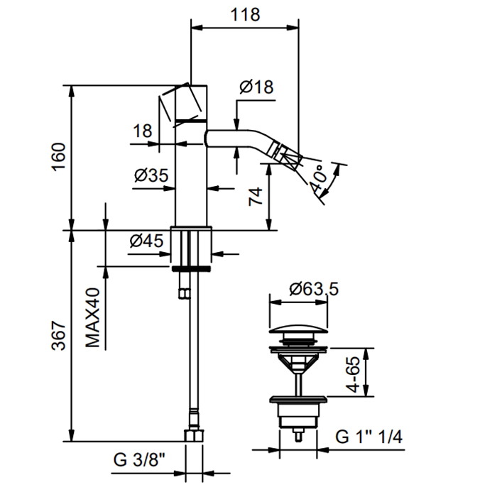 Смеситель для биде Fantini Nostromo 50 02 G908F Хром Fantini NOSTROMO SMALL Смесители для биде на 1 отверстие , цвет: хром