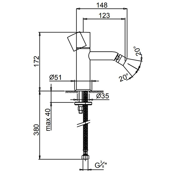 Смеситель для биде Fantini Nostromo 50 93 E908WF Нержавейка Fantini Nostromo Смеситель для биде, 1 отв., без донного клапана, цвет: нержавеющая сталь