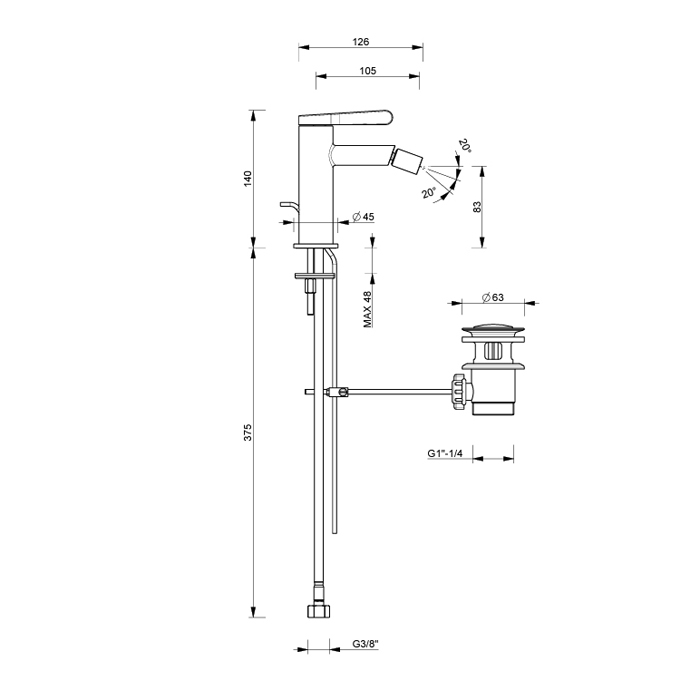 Смеситель для биде Fantini Torino 58 02 L908F Хром FANTINI Torino Смеситель для биде на 1 отверстие, излив 10,5 см, с донн клап. хром