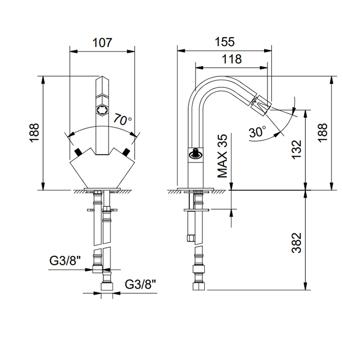 Смеситель для биде Fantini Venezia 29 02 N462SWF Хром FANTINI VENEZIA Смеситель для биде на 1 отверстие, двухвентильный, без ручек, без донного клапана, цвет хром