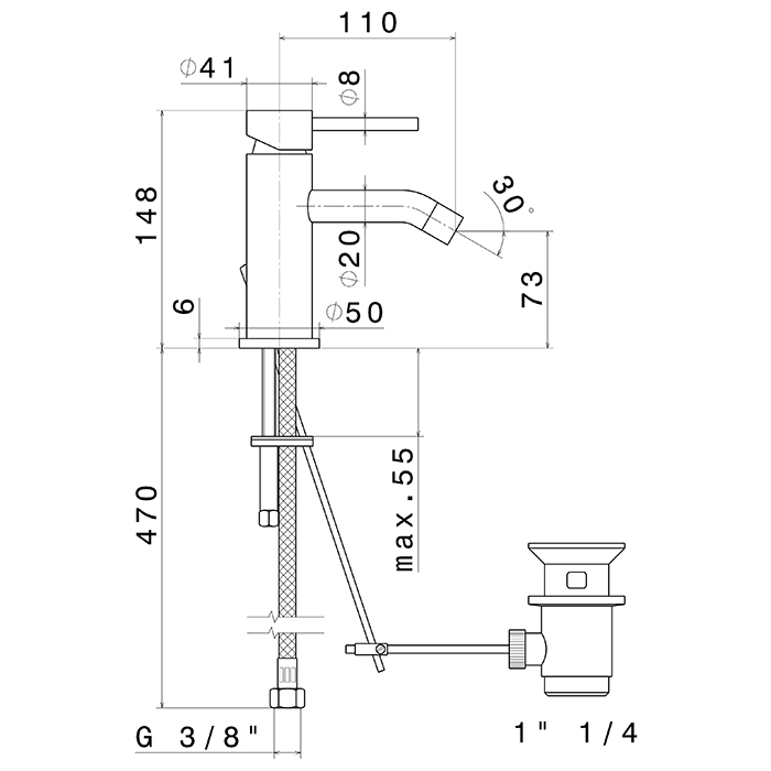 Смеситель для биде Newform XT 4223.M0.070 Newform XT Смеситель для биде с донным клапаном, цвет: titanium satin
