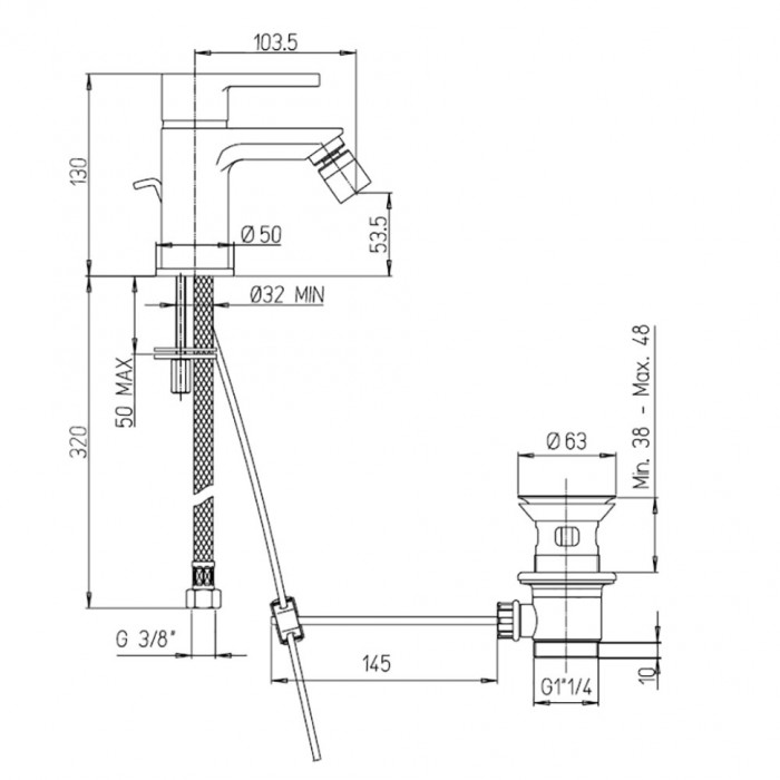 Смеситель для биде PAINI Arena, хром (CR) 92CR3062SFTKM