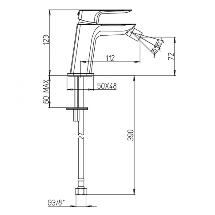 Смеситель для биде PAINI Nove без донного клапана, хром (CR) 09CR304 смеситель для биде Paini Италия