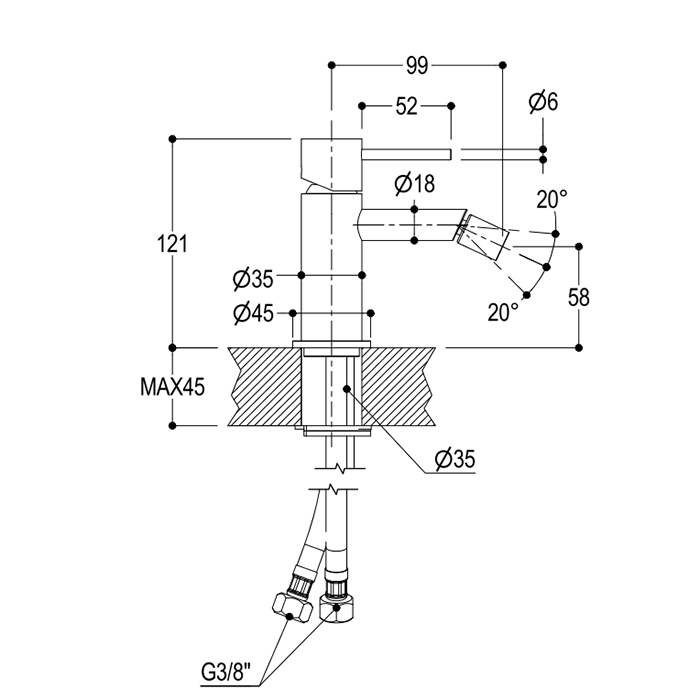 Смеситель для биде Ritmonio Diametro35 PR52BA201BLX Ritmonio Diametro35 S Смеситель однорычажный для биде, цвет: Brushed Black Chrome