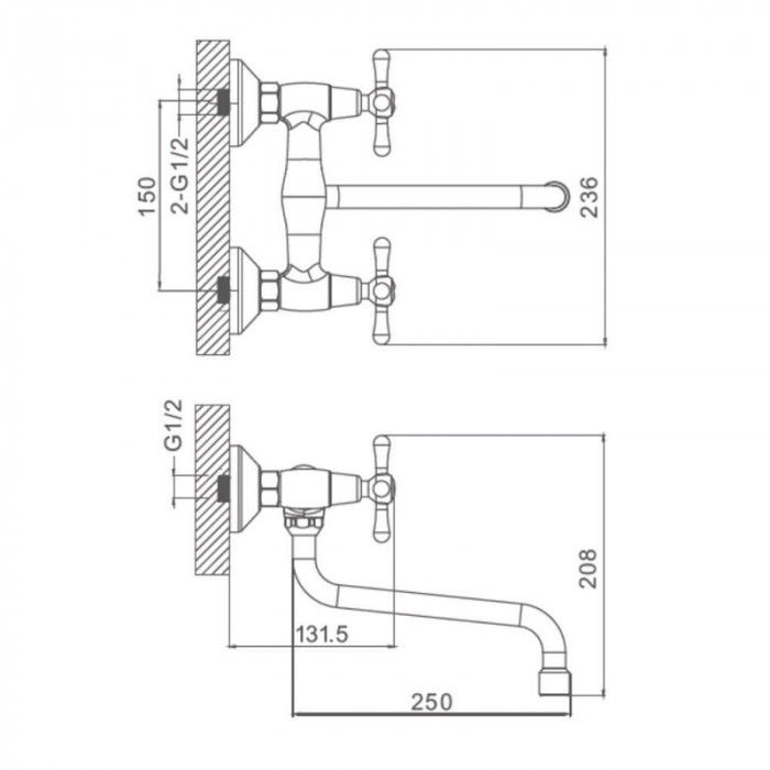 Смеситель для кухни настенный Prohanss P10.46, хром