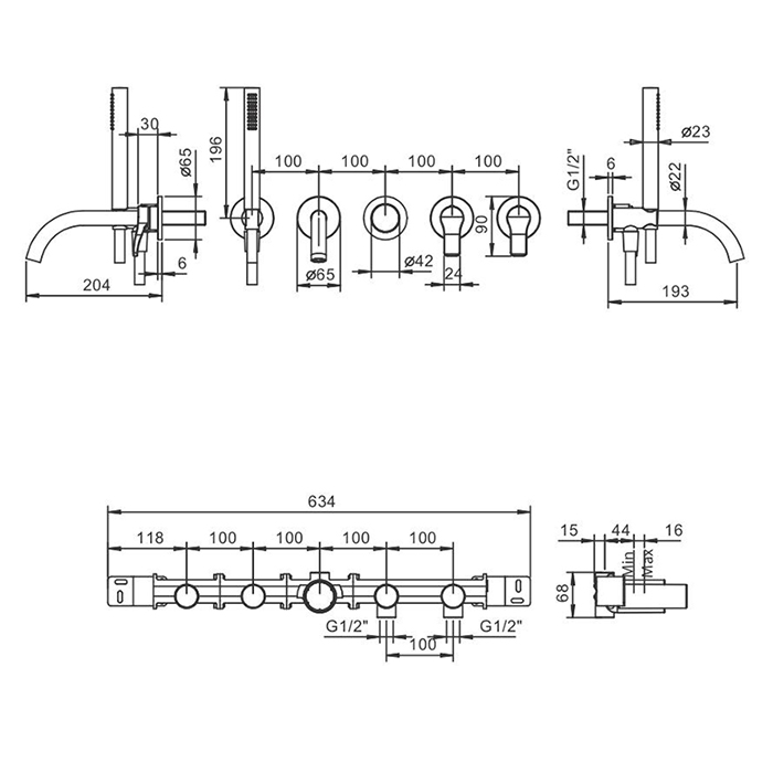 Смеситель для ванны Fantini AL/23 26 02 B719B Хром Fantini AL/23 Смеситель для ванны, встраиваемый, на 2 источника, излив 190мм, (наружняя часть), цвет: хром
