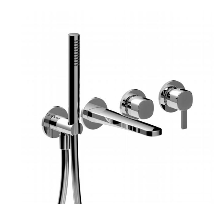 Смеситель для ванны Fantini Lame 24 02 M120B Хром Fantini Lame Смеситель для ванны, встраиваемый, на 2 источника, излив 150мм, с ручн.душем, (наружняя часть), цвет: хром