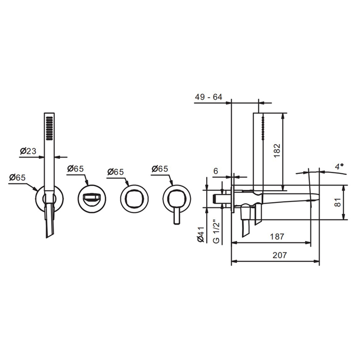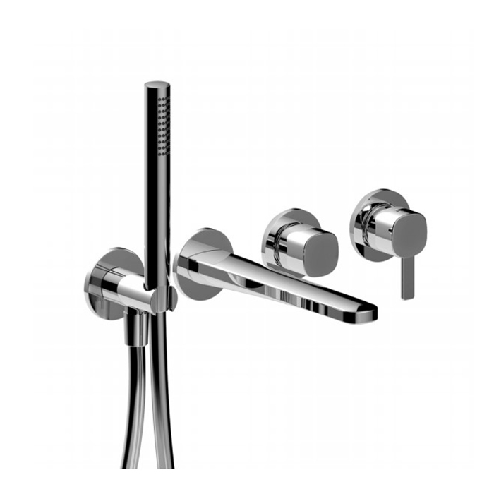 Смеситель для ванны Fantini Lame 24 02 M121B Хром Fantini Lame Смеситель для ванны, встраиваемый, на 2 источника, излив 190мм, с ручн.душем, (наружняя часть), цвет: хром