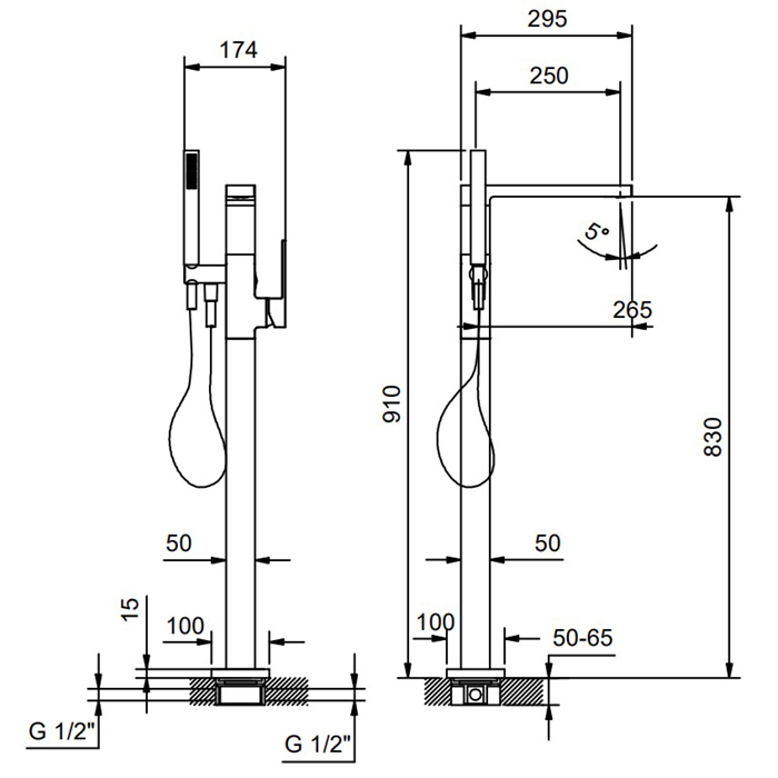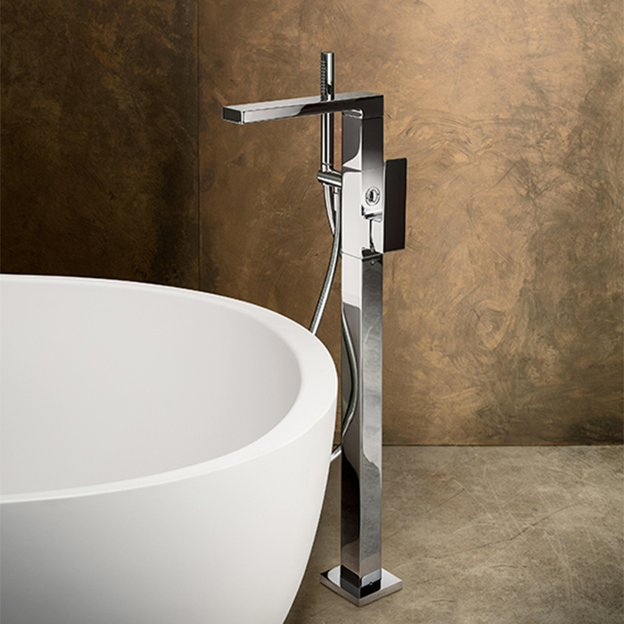 Смеситель для ванны Fantini Mint 34 02 F080B Хром Fantini Mint Смеситель для ванны, напольный, с ручн душем, излив 250мм, с ручн.душем, (наружняя часть), цвет: хром