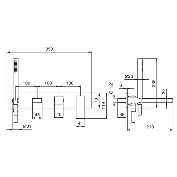 Смеситель для ванны Fantini Mint 34 02 F721B Хром Fantini Mint Смеситель для ванны, встраиваемый, излив 200мм, с ручн.душем, (наружняя часть), цвет: хром