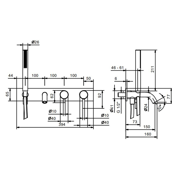 Смеситель для ванны Fantini Nostromo 50 02 E820B Хром Fantini Nostromo Смеситель для ванны, встраиваемый, с ручн душем, излив 150мм, (наружняя часть), цвет: хром