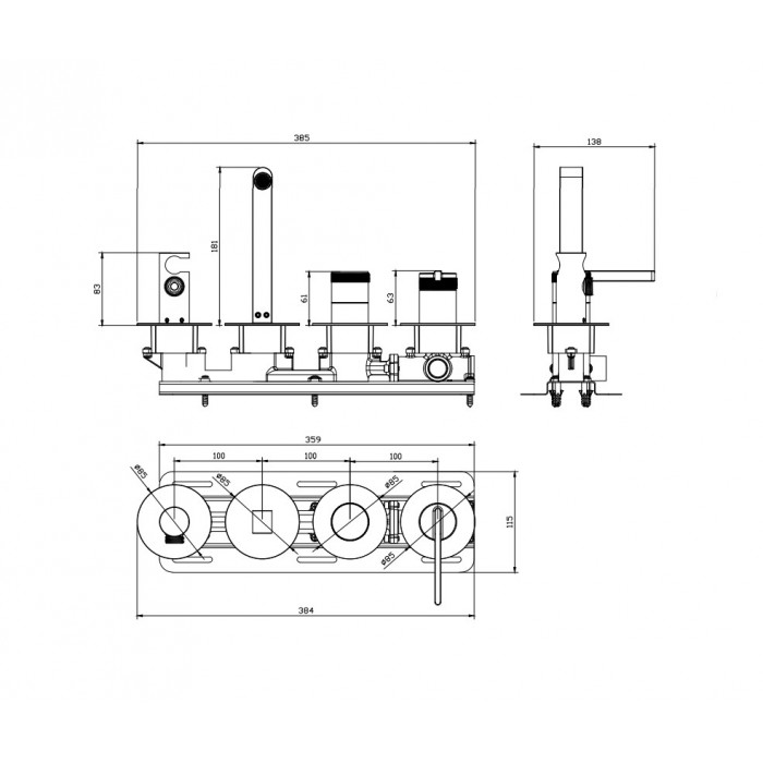 Смеситель для ванны настенный 4 отверстия DQ Bonn мат.золото DA1704807