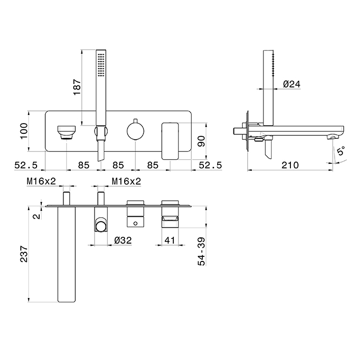 Смеситель для ванны Newform B-Easy 72672E.21.018 Хром Newform B-Easy Внешняя часть смесителя для ванн состоящая из: смесителя для ванны с переключателем, излива из стены и душа, цвет: хром