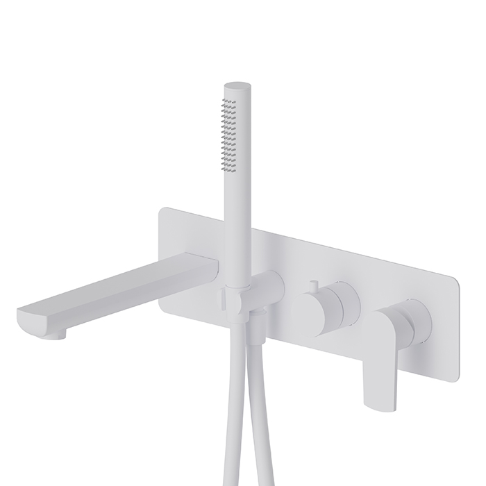 Смеситель для ванны Newform Haka 72072E.01.014 Белый матовый Newform Haka Внешняя часть механического смесителя для ванны с ручным душем, переключателем и изливом для ванны, цвет: белый матовый