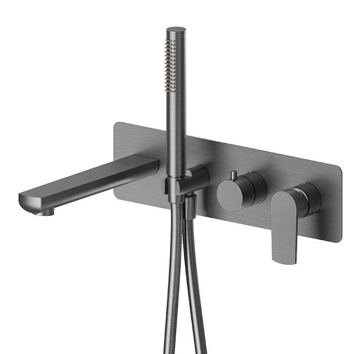 Смеситель для ванны Newform Haka 72072E.59.064 Gun metal Newform Haka Внешняя часть механического смесителя для ванны с ручным душем, переключателем и изливом для ванны, цвет: PVD brushed gun metal