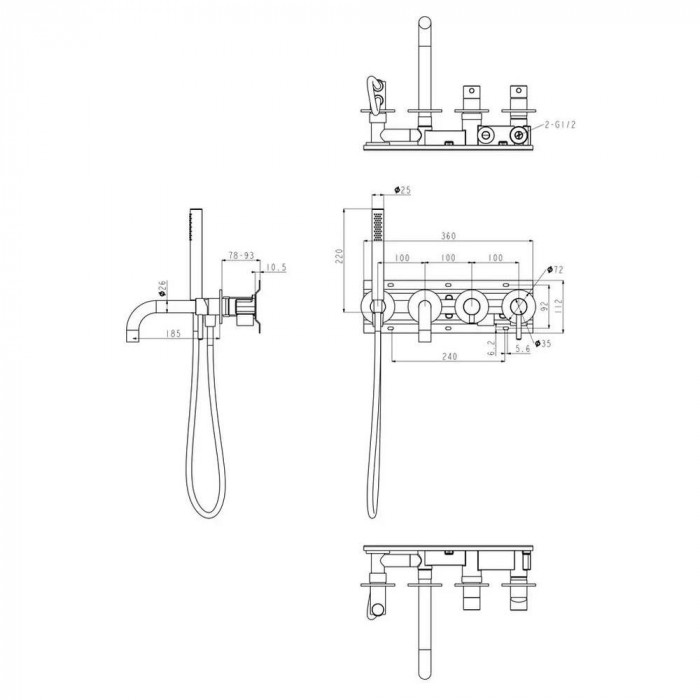 Смеситель для ванны встраиваемый Grocenberg GB5070GL, брашированное золото