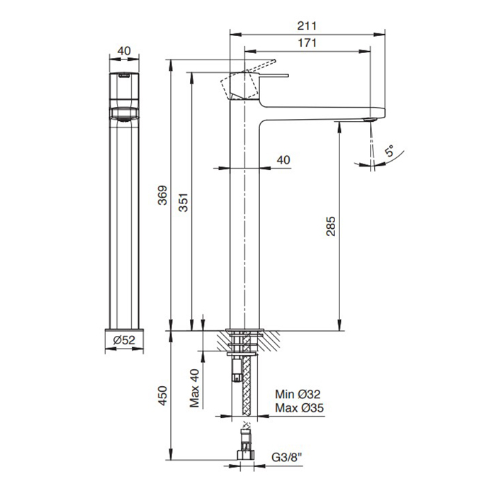 Смеситель для раковины Fantini Lame 24 02 M106WF Хром