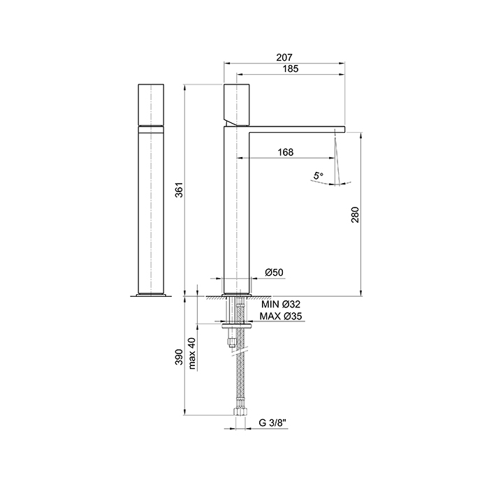 Смеситель для раковины Fantini Milano 31 P5 3006WF Gun metal Fantini Milano Смеситель для раковины, 1 отв., без донного клапана, излив 170мм, h=280мм, цвет: Matt Gun Metal PVD
