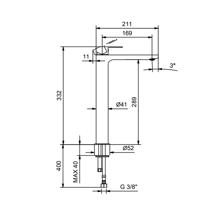 Смеситель для раковины Fantini Myo 61 02 V606WF Хром Fantini MYO Смесители для раковины на 1 отверстие, высокий излив , цвет: хром