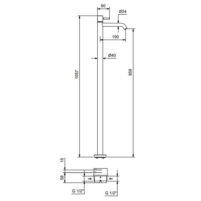 Смеситель для раковины Fantini Nostromo 50 02 E836B Хром Fantini Nostromo Смеситель для раковины, напольный, без донного клапана, излив 190мм, (наружняя часть), цвет: хром