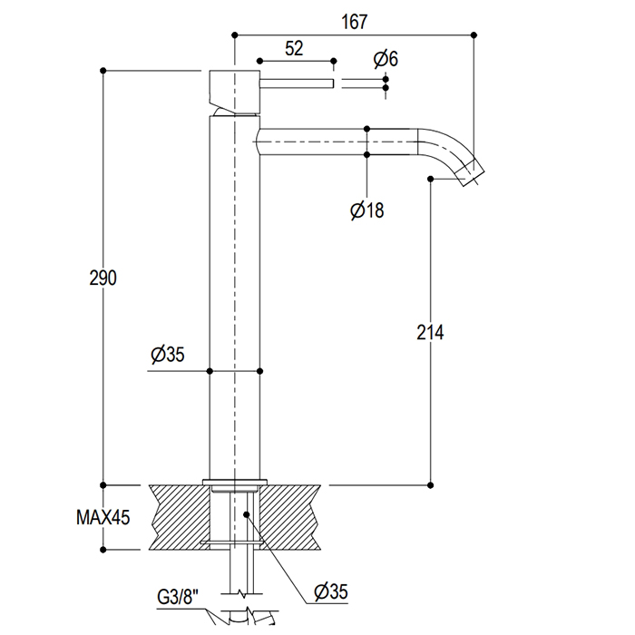 Смеситель для раковины Ritmonio Diametro35 PR52AF201BLX Ritmonio Diametro35 S Cмеситель однорычажный высокий для раковины, цвет: Brushed Black Chrome
