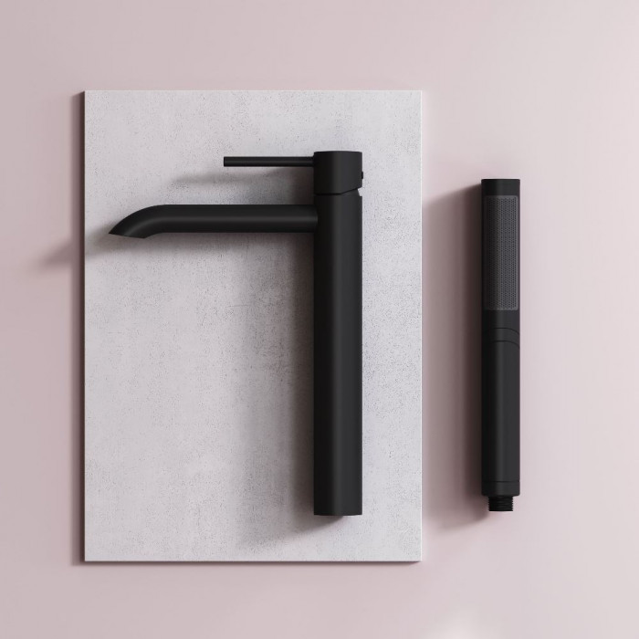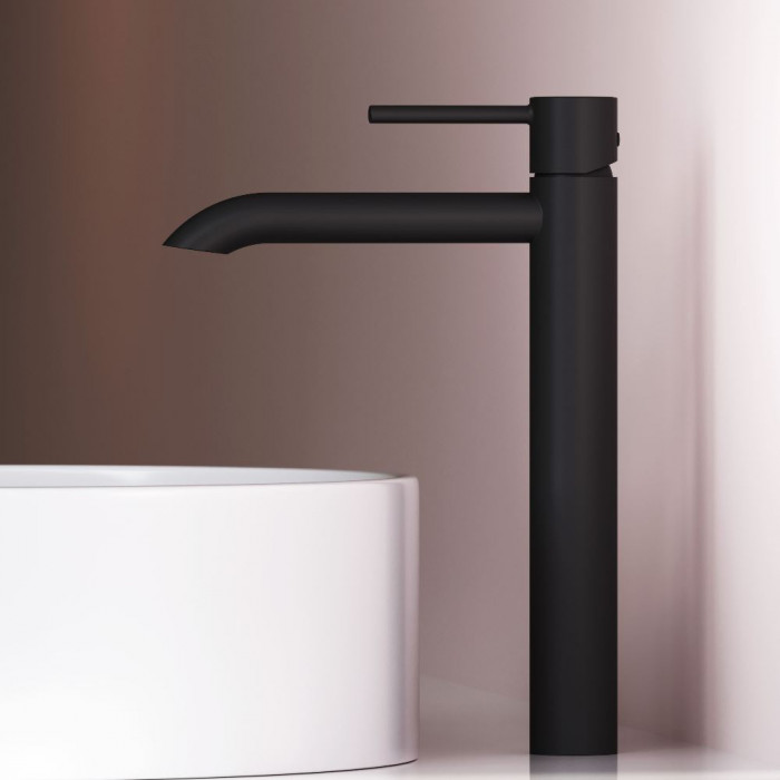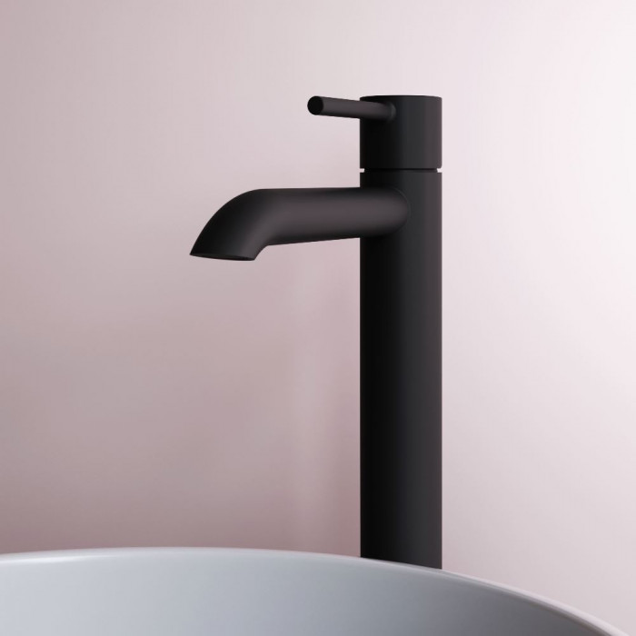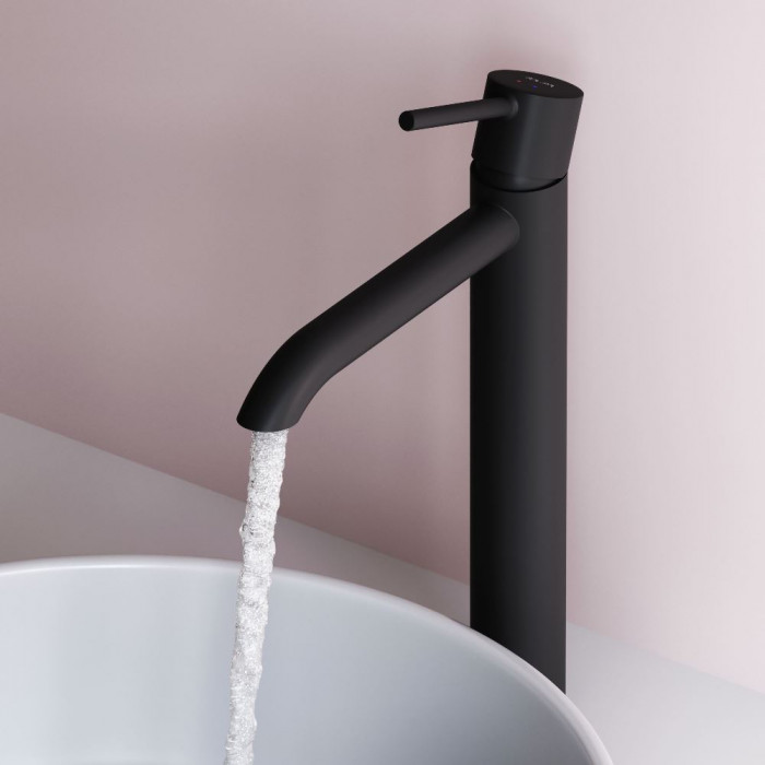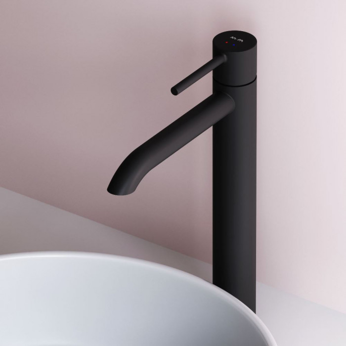 Смеситель для раковины, высокий AM.PM Libre F6092022 Чёрный Матовое Германия Латунь, Zamak 3 Для раковины На раковину Округлая AM.PM Soft Motion 26 мм керамический Однозахватный Смеситель, гибкая подводка, комплект крепежа, инструкция 5-6 л/мин Высокий смеситель для раковины Libre — переосмысление современного минимализма в линейке AM.PM. Коллекция Libre объединяет мягкие плавные линии и чёткую геометрию, создавая ощущение лёгкости, простора и визуального баланса. Дизайн, разработанный совместно со всемирно известным агентством Brandis, Германия, не просто приковывает к себе внимание, а задает атмосферу всей ванной комнаты.
