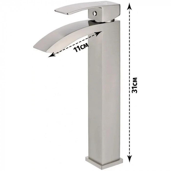 Смеситель для раковины высокий Grocenberg GB3007NK, никель Германия 5 лет никель матовая современный стиль латунь на столешницу