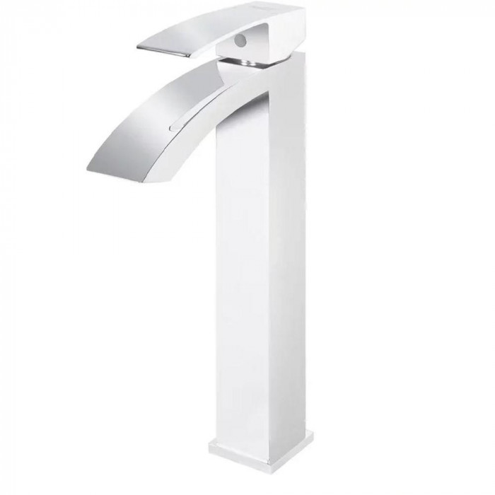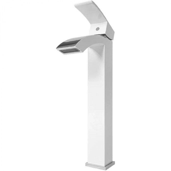 Смеситель для раковины высокий Grocenberg GB3007WC, белый/хром Германия 5 лет белый/хром глянцевая современный стиль латунь на столешницу