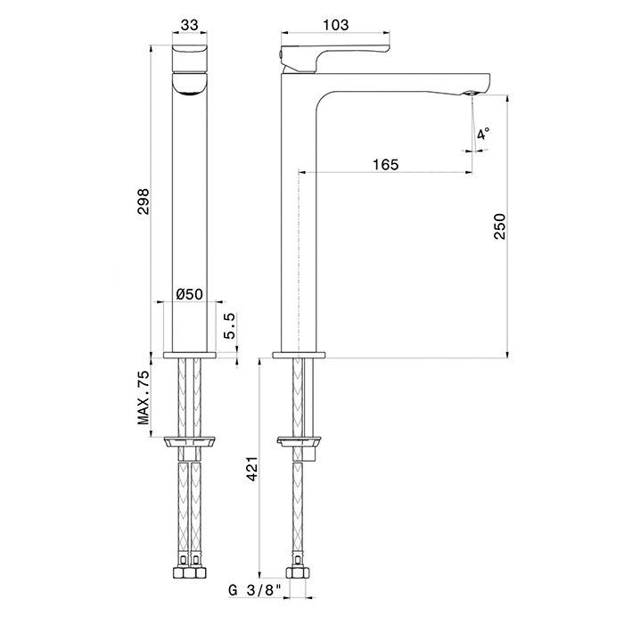 Смеситель для раковины, высокий Kerama Marazzi Ole 69416KM.21.018 хром