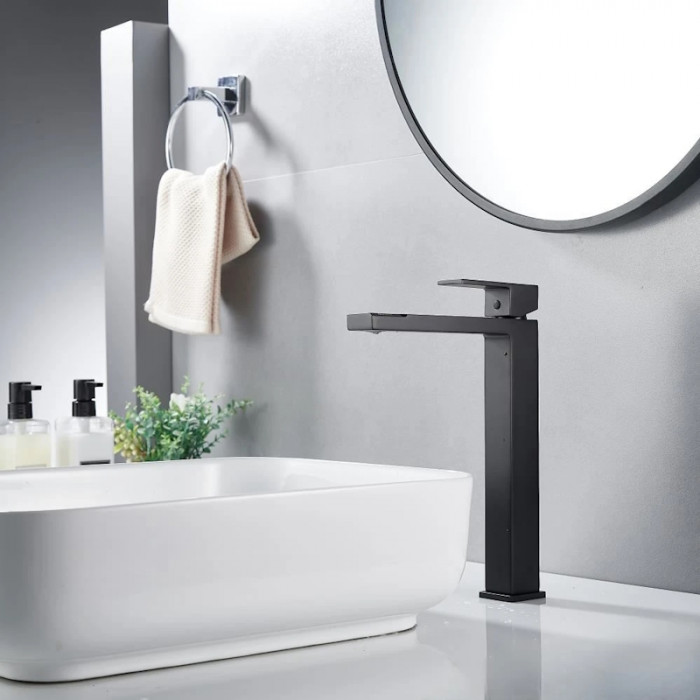 Смеситель для раковины высокий Knotlor KN-24/BL, черный