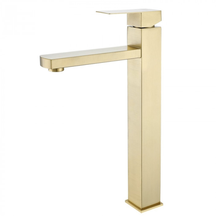 Смеситель для раковины высокий Prohanss P30.15.03, золотой сатин Смеситель для раковины высокий Prohanss P30.15.03, золотой сатин — это идеальное сочетание современного минималистичного дизайна и высокого качества. Изготовленный из нержавеющей стали этот высокий кран для умывальника обеспечивает долговечность и надёжность в использовании, а также устойчивость к механическим повреждениям. Механизм смесителя для раковины основан на керамическом картридже с рычажным управлением, что гарантирует лёгкость и точность регулировки температуры и напора воды. Его минималистичный дизайн станет настоящим украшением вашей ванной комнаты, гармонично вписываясь в любой интерьер благодаря лаконичным формам и элегантным линиям.