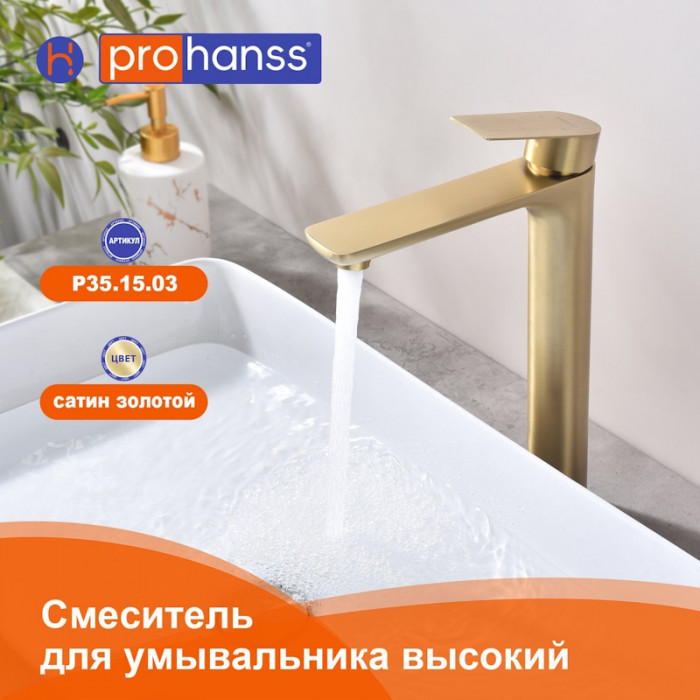 Смеситель для раковины высокий Prohanss P35.15.03, золотой сатин Смеситель для раковины высокий Prohanss P35.15.03, золотой сатин — это идеальное сочетание современного минималистичного дизайна и высокого качества. Изготовленный из нержавеющей стали этот высокий кран для умывальника обеспечивает долговечность и надёжность в использовании, а также устойчивость к механическим повреждениям. Механизм смесителя для раковины основан на керамическом картридже с рычажным управлением, что гарантирует лёгкость и точность регулировки температуры и напора воды. Его минималистичный дизайн станет настоящим украшением вашей ванной комнаты, гармонично вписываясь в любой интерьер благодаря лаконичным формам и элегантным линиям.