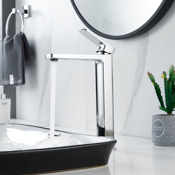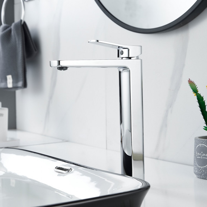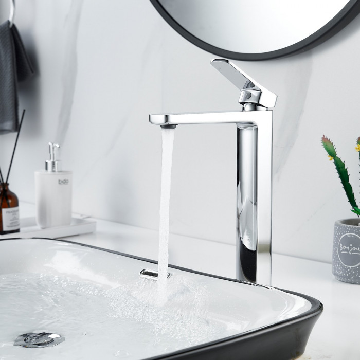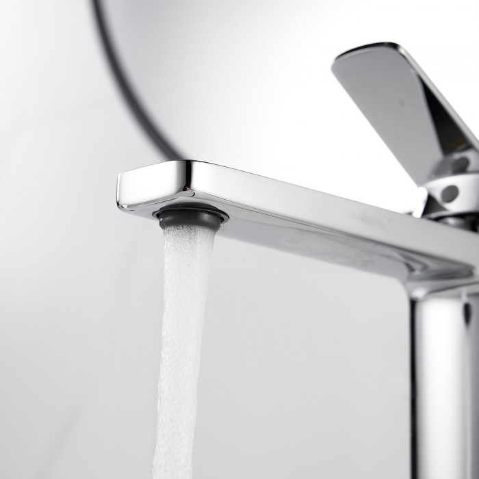 Выглядит стильно, матовый черный не маркий. Ход рычага плавный, напор регулируется точно. Из минусов - тяжёлый, пришлось аккуратно подтягивать крепеж.