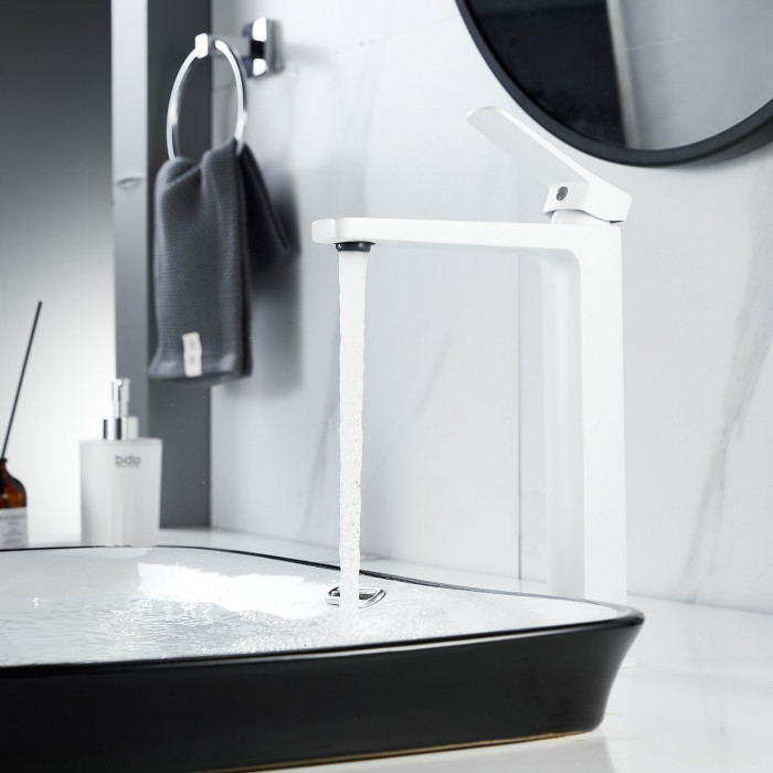 Выглядит стильно, матовый черный не маркий. Ход рычага плавный, напор регулируется точно. Из минусов - тяжёлый, пришлось аккуратно подтягивать крепеж.