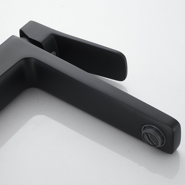 Выглядит стильно, матовый черный не маркий. Ход рычага плавный, напор регулируется точно. Из минусов - тяжёлый, пришлось аккуратно подтягивать крепеж.
