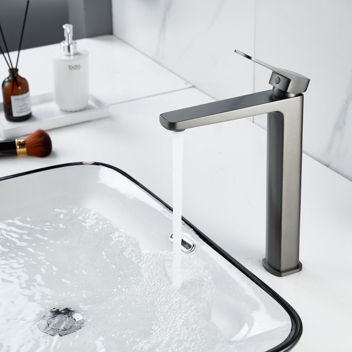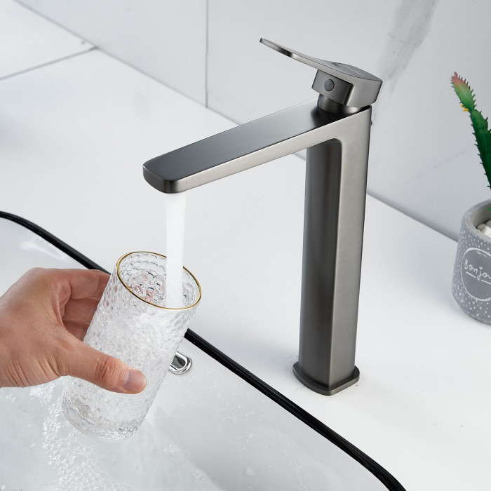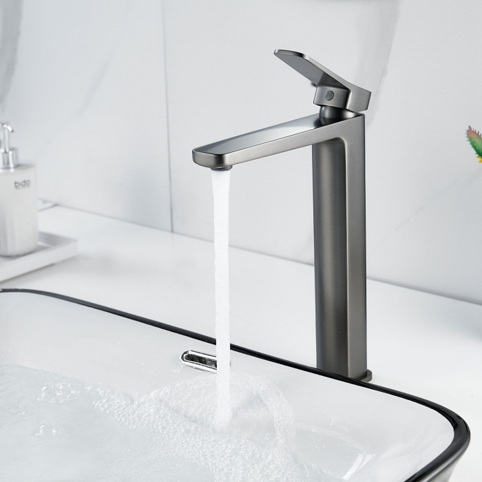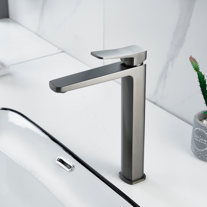 Смеситель для раковины высокий Raffine F1199T, оружейная сталь