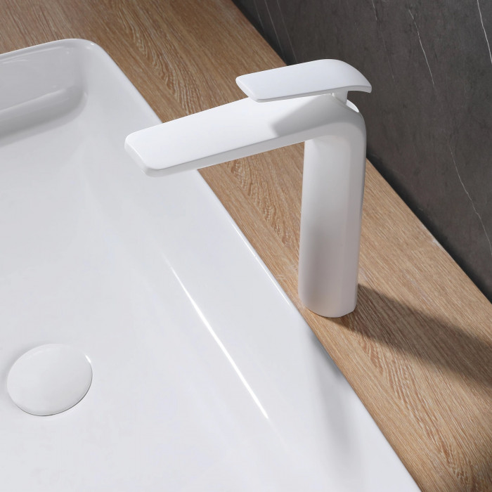 Смеситель для раковины высокий Rose R3911C, белый