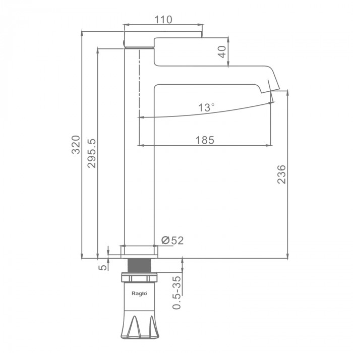Смеситель Raglo высокий для умывальника R20.15 хром Основные характеристики: